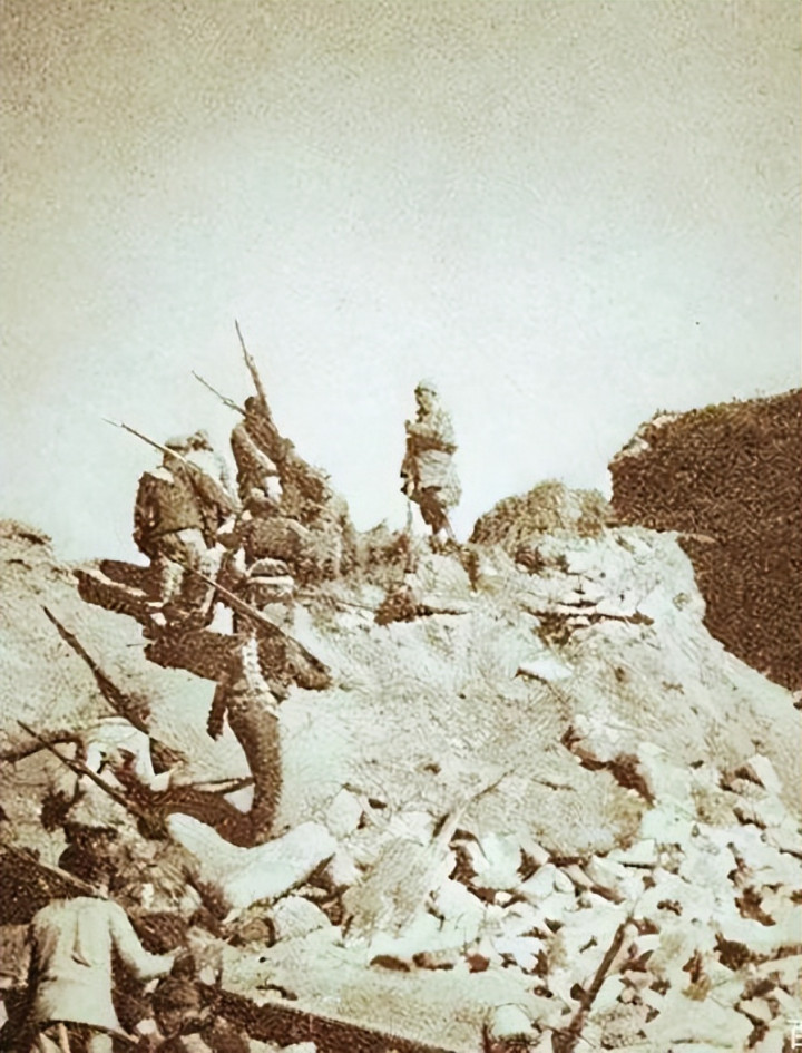 那天早上雾气重,坡上有个战士的手套反光闪了一下,被鬼子瞅见了。