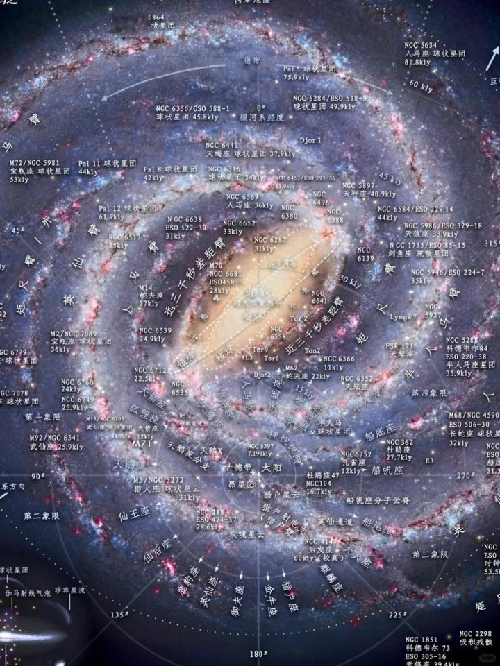 星河系是一个直径约20万光年的巨型漩涡星系,就像一个广宽的“寰宇风车”,中心是一个细致的核球,周围环绕着几条壮丽的旋臂,内部挤满了上千亿颗恒星,而咱们的太阳,就位于星河系一条不起眼的小旋臂,猎户座支臂上,距离星河系中心约2.6万光年。