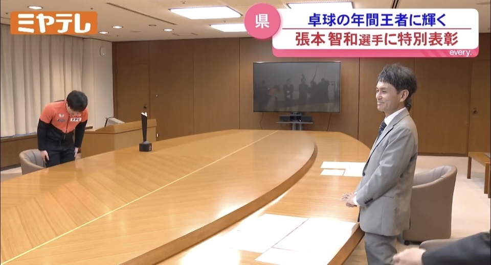 近日,日本选手张本智和取得日本宫城县政府的相等奖赏,在当地官员眼前弯腰鞠躬,引起热议。