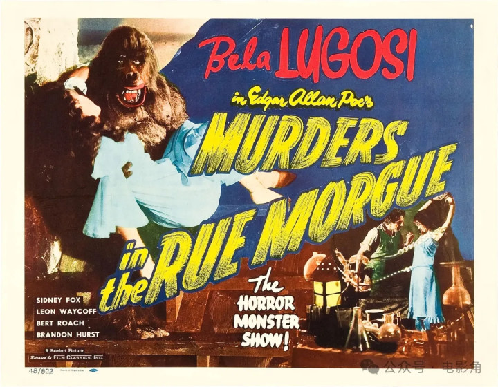 他们请来贝拉・卢戈西(《德古拉》上映一年后)饰演豪恣科学家,他勒诈女性并为其打针焦灼猩猩的血液。1932年,海斯法典尚未端正暴力镜头,整部影片充斥着尖叫的女性与扑来的黑影。它巧合莫得档次明晰的推理与客厅揭秘桥段,但爱伦・坡本东说念主大致率会心爱这部制品。