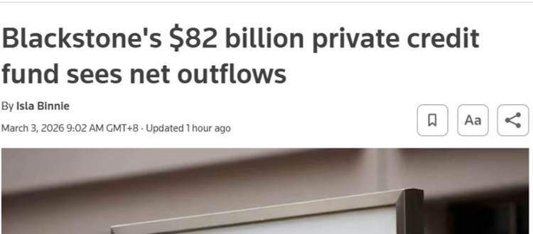 【环球网财经笼统报说念】据路透社报说念,宇宙最大另类财富措置公司黑石集团已快乐本季度擢升一只私东说念主信贷基金向投资者的赎回额度,该基金因此出现资金净流出。