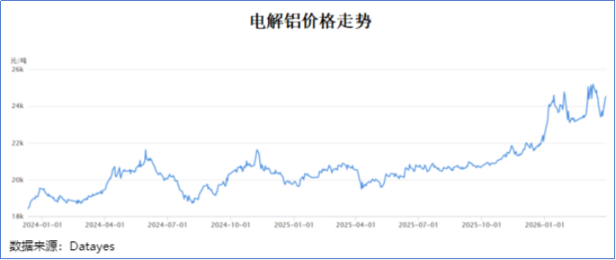 2025年1月,我国电解铝价钱在19000元/吨傍边耽搁,2026年3月末,这一价钱已接近24000元/吨。