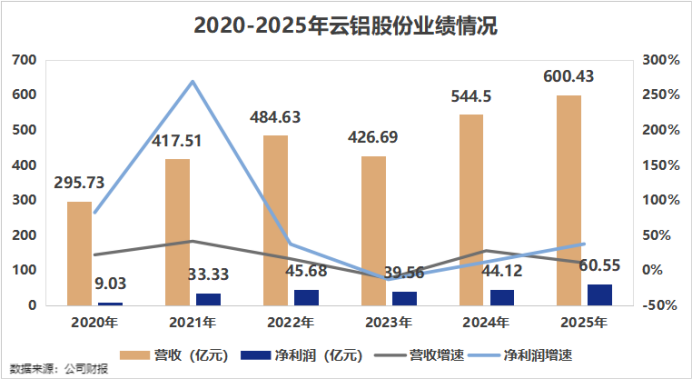 3月27日,云铝股份发布了2025年度事迹敷陈。