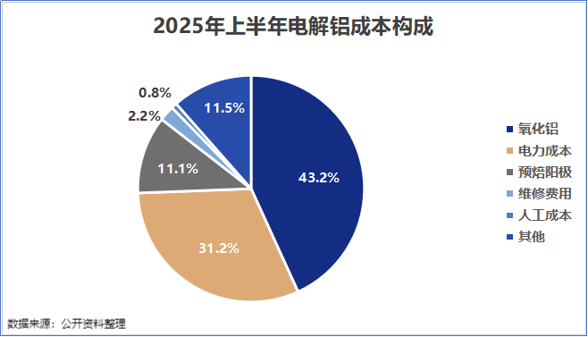 电解铝老本主要由电力、氧化铝、预焙阳极三大板块和辅料、东谈主工和折旧等因素组成。