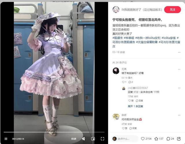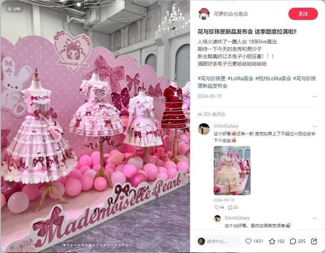 在酬酢媒体,花与珍珠匣领有极高的参谋度。在小红书的有趣社区中,用户会共享衣服上的一抹蕾丝拈花,也会共享搭配“Lo裙”(洛丽塔裙)的玩偶,“Lo娘”们晒图条记成为了“细节放大器”,驳斥区更成了追问“流畅”的进口。