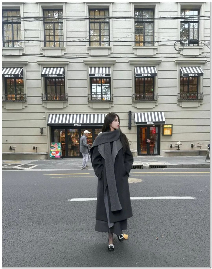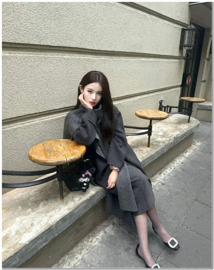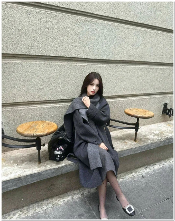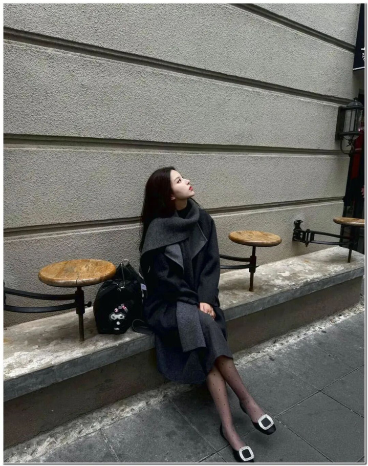 lol外围投注 波点薄黑+领巾大衣+钻扣单鞋, 确实太有氛围感了