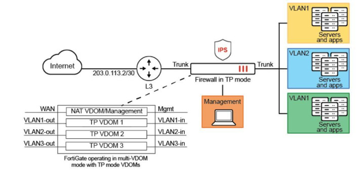 这种场景下,防火墙根柢不需要参与路由,透明模式恰好契合。