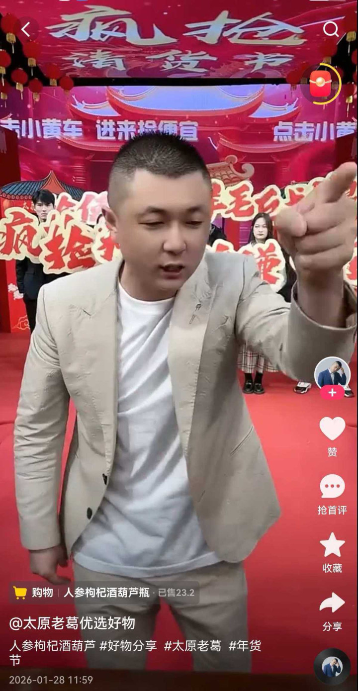 2026年1月27日,粉丝高达9900多万的“太原老葛”,其关联的山西老葛商贸有限公司虚假宣传、价格欺诈被查处案件,入选市场监管总局2026年1月27日公布的2025年整治“内卷式”竞争十大重大案件。