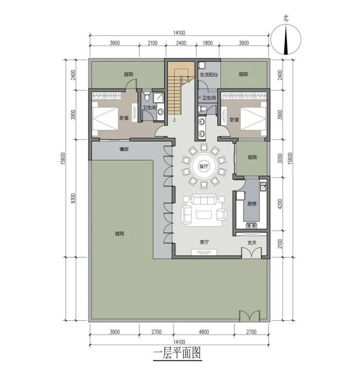 多重小型内院: 在配置北侧和东侧巧妙穿插了多个小庭院。这种筹办竣事了“户户推窗见景”,确保了室内的采光与透风,让整座屋子呼吸起来。