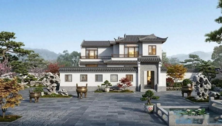 现代建材,古法田地: 外墙接受真石漆或白瓷砖,搭配铝合金仿古门窗,既保留了水墨配置的田地,又惩处了传统木质结构易腐化、难重视的问题。