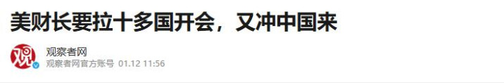 2.《好意思财长要拉十多国开会,又冲中国来》2026年01月12日|开头:不雅察者网