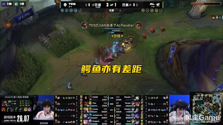对线狂压40多刀,遭到对面打野GANK的时间,Bin致使1打2双杀,技能还扛了一下塔,这种说明的鳄鱼,比赛里仍是很久没看到过了,最离谱的是,打到40多分钟,鳄鱼团战依旧很灵验,Bin老迈给东说念主嗅觉,不像是在打比赛,更像排位里炸鱼,对比之下,AL圣枪哥的鳄鱼,就有点下饭了。