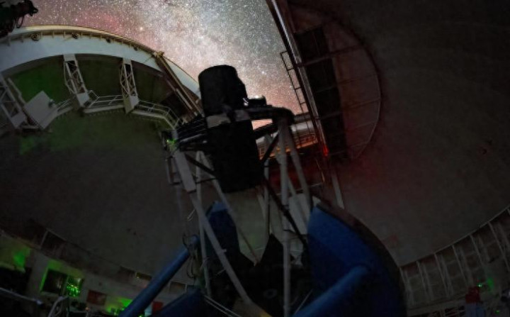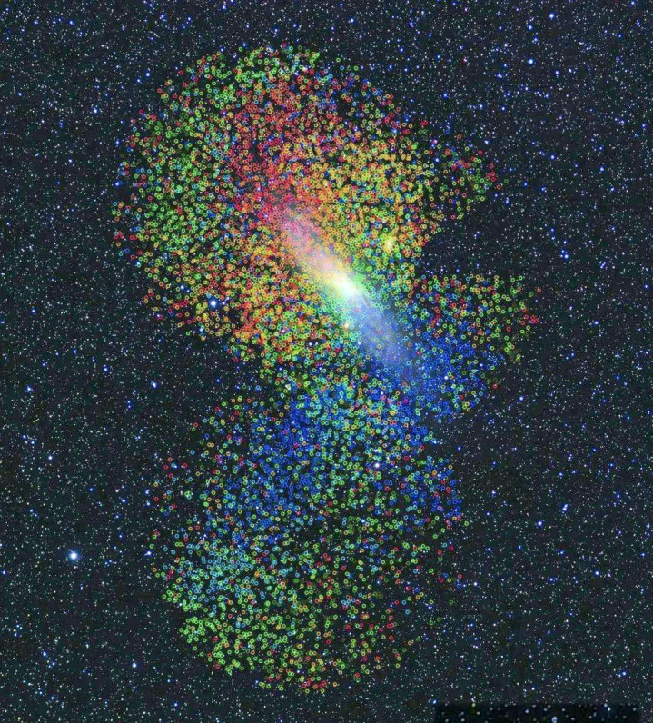 好意思国亚利桑那州的沙漠山顶上,有台叫DESI的暗能量光谱仪,装在基特峰天文台那架4米口径的梅奥尔千里镜上。它从2021年开动隆重不雅测,干的活说白了,即是给天地作念三维CT——同期采集5000个天体的光谱,靠星系红移画出一张前所未有的天地立体舆图。